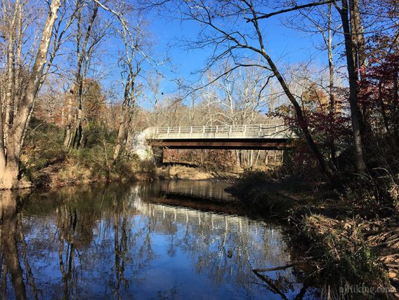 Looking back at the bridge on Gilbride Rd while on the trail running closer to the water: