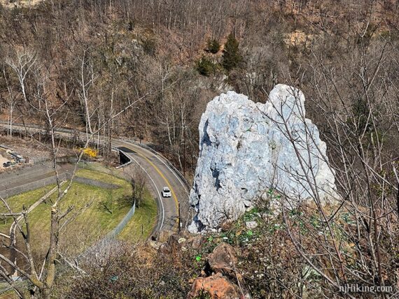 The rock painted white is “Chimney Rock”… as it sort of looks like a broken chimney stack. See Bruce Doorly’s “Chimney Rock” article for a little history and old photos as well as History Girl’s “Rocks with a View: NJ Revolutionary War Lookouts” article.