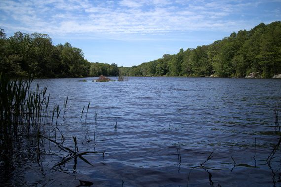 Continue on the trail, hugging the lake and there are some rocks to sit on. There may be lots of poison ivy around the lake.