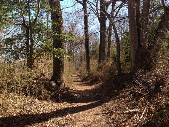 Follow RED counterclockwise from the Nature Center (which I just realized I have zero photos of…), passing intersections with other trails such as WHITE, GREEN, or BLUE.